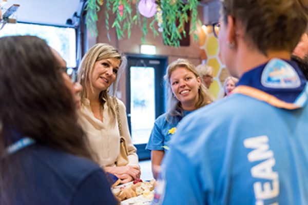 Op donderdag 22 februari 2024 bezocht Hare Majesteit Koningin Máxima Mini-Jamboree ‘Jonge leiders maken de toekomst’. De dag stond in het teken van mentale gezondheid en de belangrijke bijdrage die scoutsleiders leveren aan de gezonde positieve ontwikkeling van jongeren. Hiervoor waren bestuurders en beslissers van maatschappelijke organisaties en bedrijfsleven uitgenodigd om rond een kampvuur in gesprek te gaan met Scoutingjongeren.
