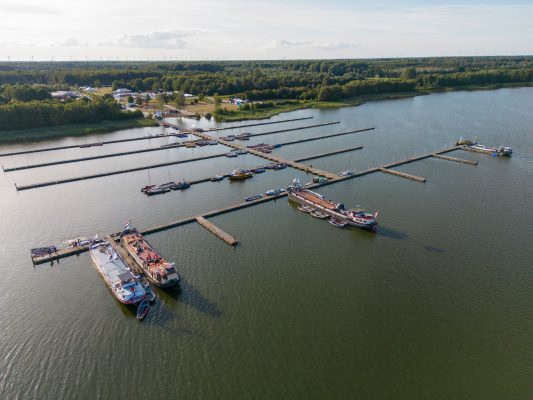Bijna 300 vletten en tussen de 30 en 50 wachtschepen meren af in het verlengde van de steiger op een speciaal voor hen ingevaren tijdelijke steiger. Vanaf september 2025 beschikt de steiger over speciale faciliteiten voor onze watergroepen zoals walstroom. De steiger is duurzaam gebouwd net als het hele Scoutinglandgoed.Foto: Mike van Dijk